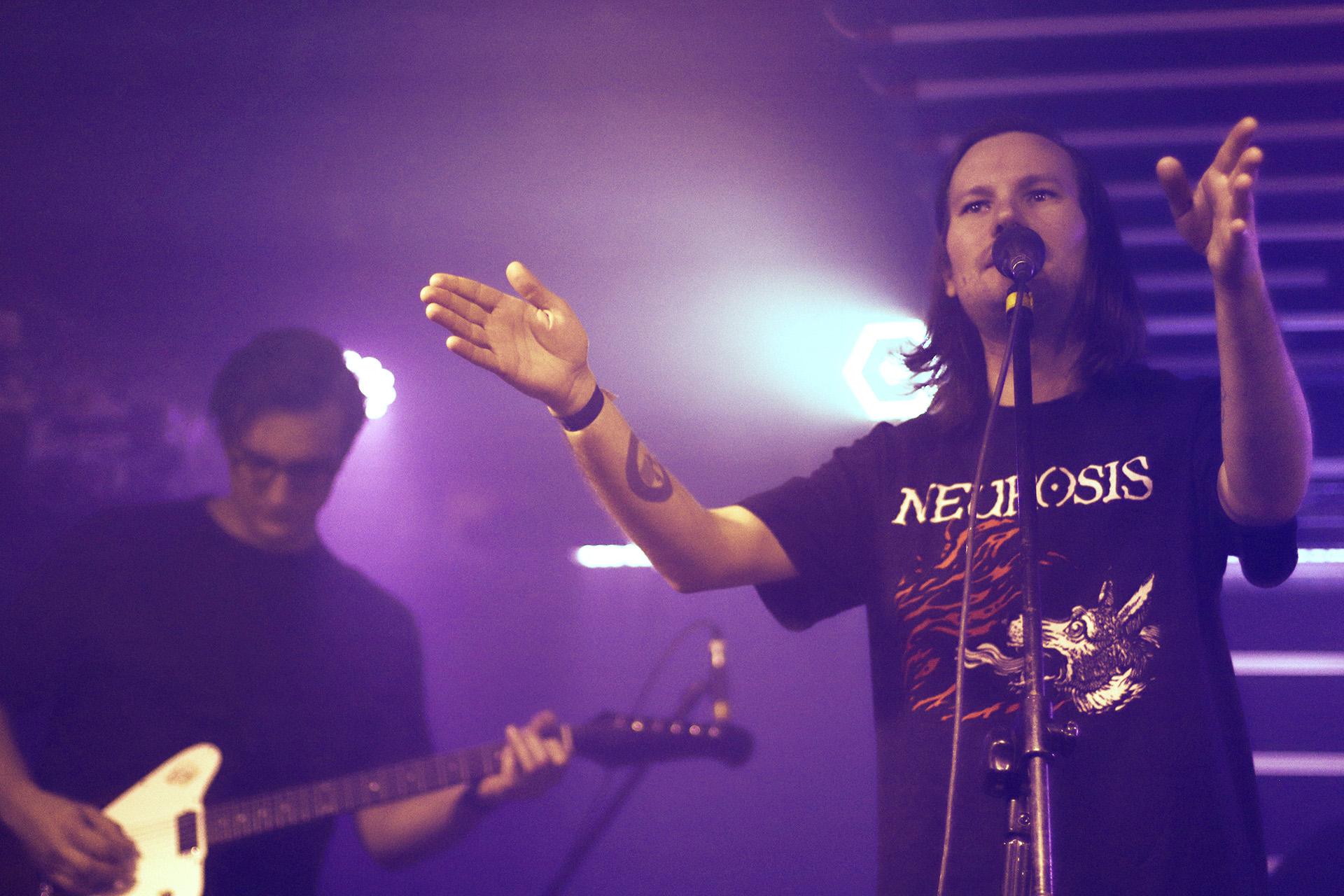 Mówiąc powyżej o preferencjach muzycznych, muszę zaznaczyć, że olsztyńskie trio Krzta nie leży na liście moich upodobań. Natomiast projekt widziałam już ponownie, więc obiektywnie mogę stwierdzić dwie rzeczy – niepohamowana energia i ekspresja, jaką przedstawia zespół, jest godna podziwu oraz mieszankę sludge’a z mathcorem grają bez zastrzeżeń. Żałuję jedynie, że kopnięcia w powietrze w wykonaniu basisty zespołu nie znalazły się w obiektywie.